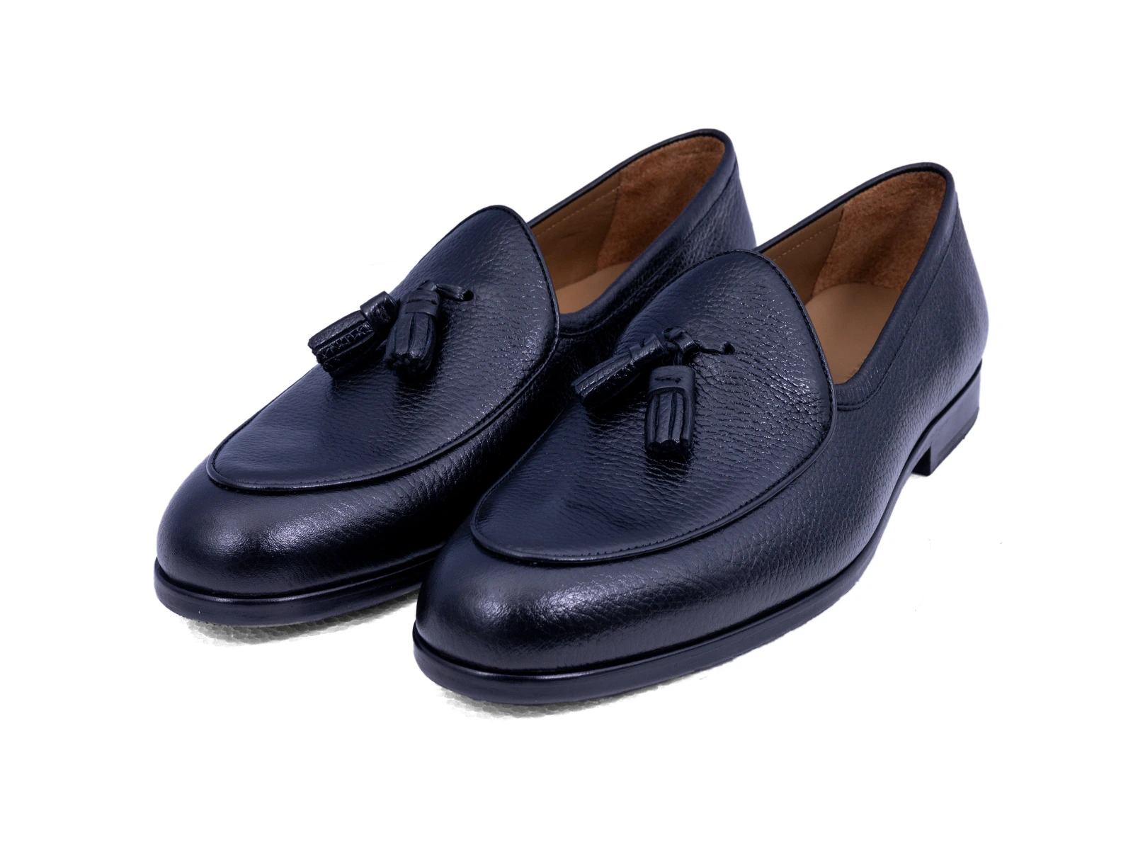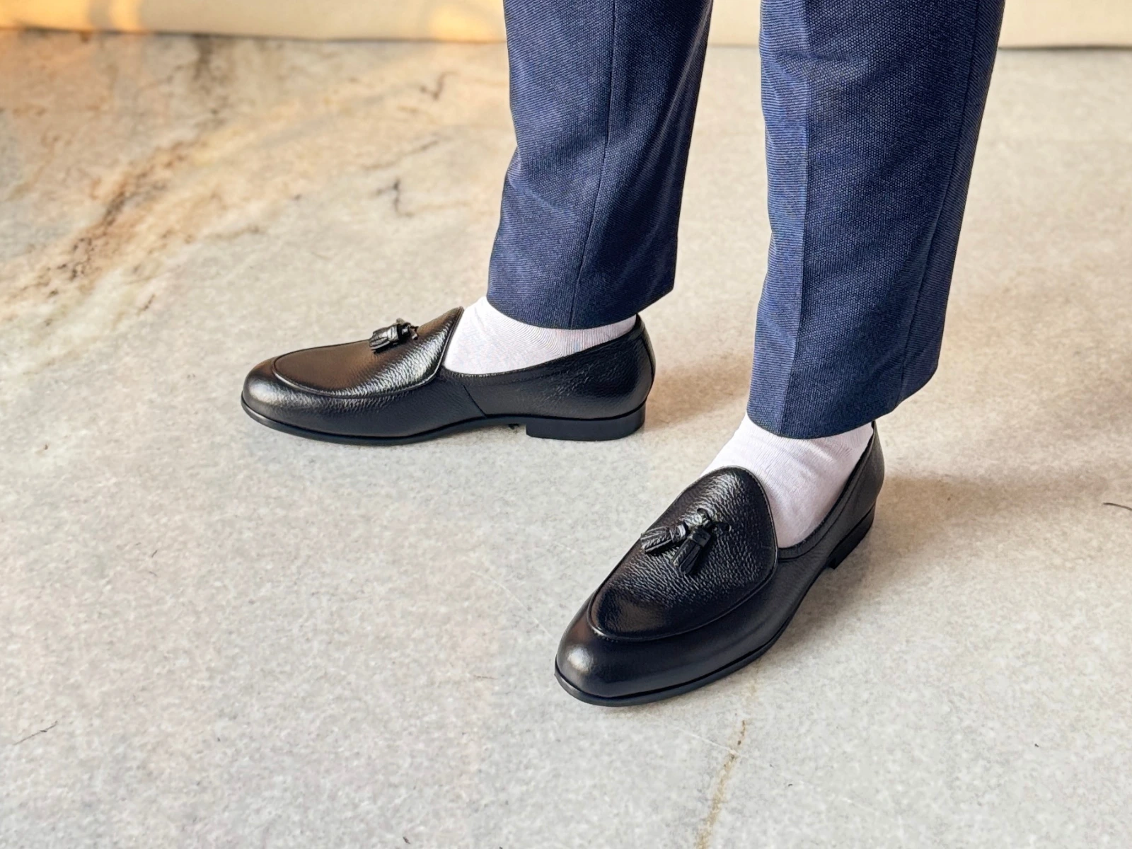 Where timeless sophistication meets effortless versatility — the KENSLEY Black Belgian Loafers are crafted for those who appreciate understated luxury and refined design. Handcrafted from premium black full-grain leather, this classic Belgian silhouette features a sleek apron vamp, clean lines, and a polished slip-on profile ideal for both formal and smart-casual dressing.